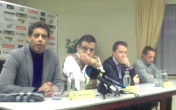 هاني رمزي في المؤتمر الصحفي مع ماجد سامي مالك ليرس البلجيكي لإعلان توليه تدريب الفريق